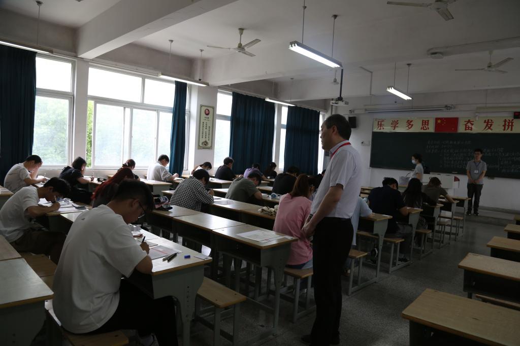 考试期间,学校领导及相关部门负责人开展现场巡查,对监控室、播音室、考务办、考场教室进行了实地检查和指导,要求各工作小组要严格按照学校要求与部署,全面、认真完成各项考务工作。