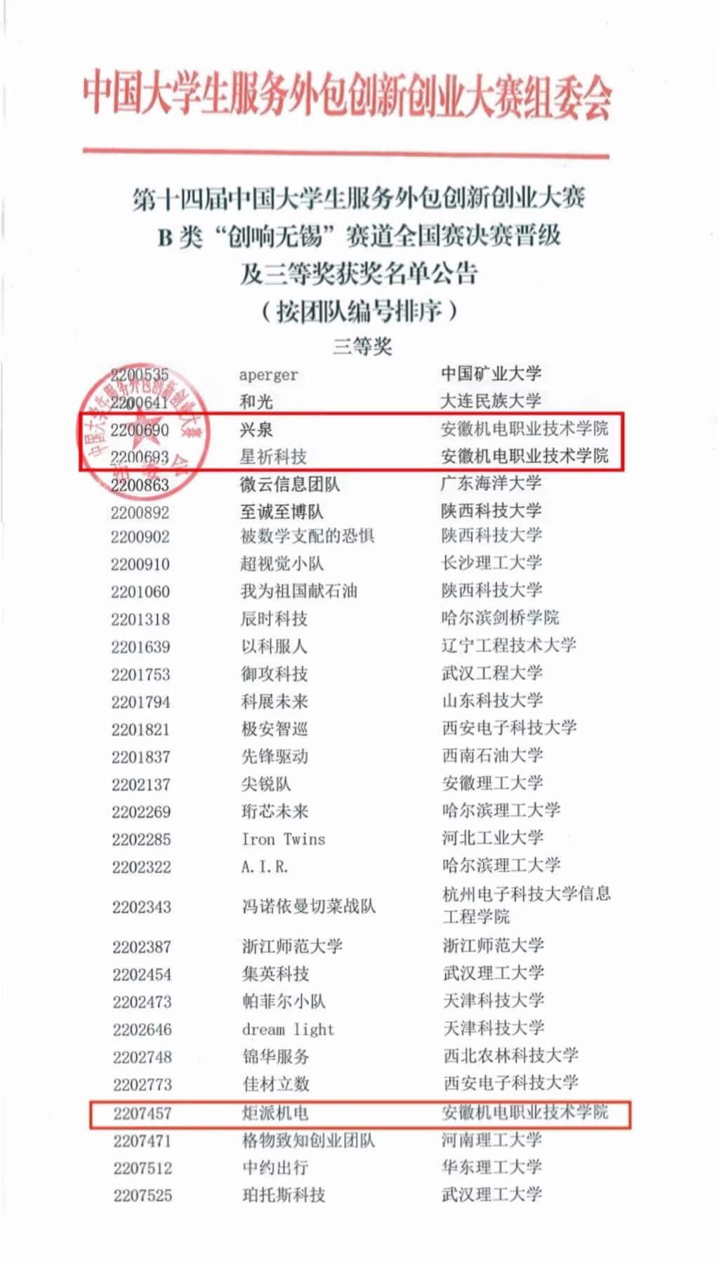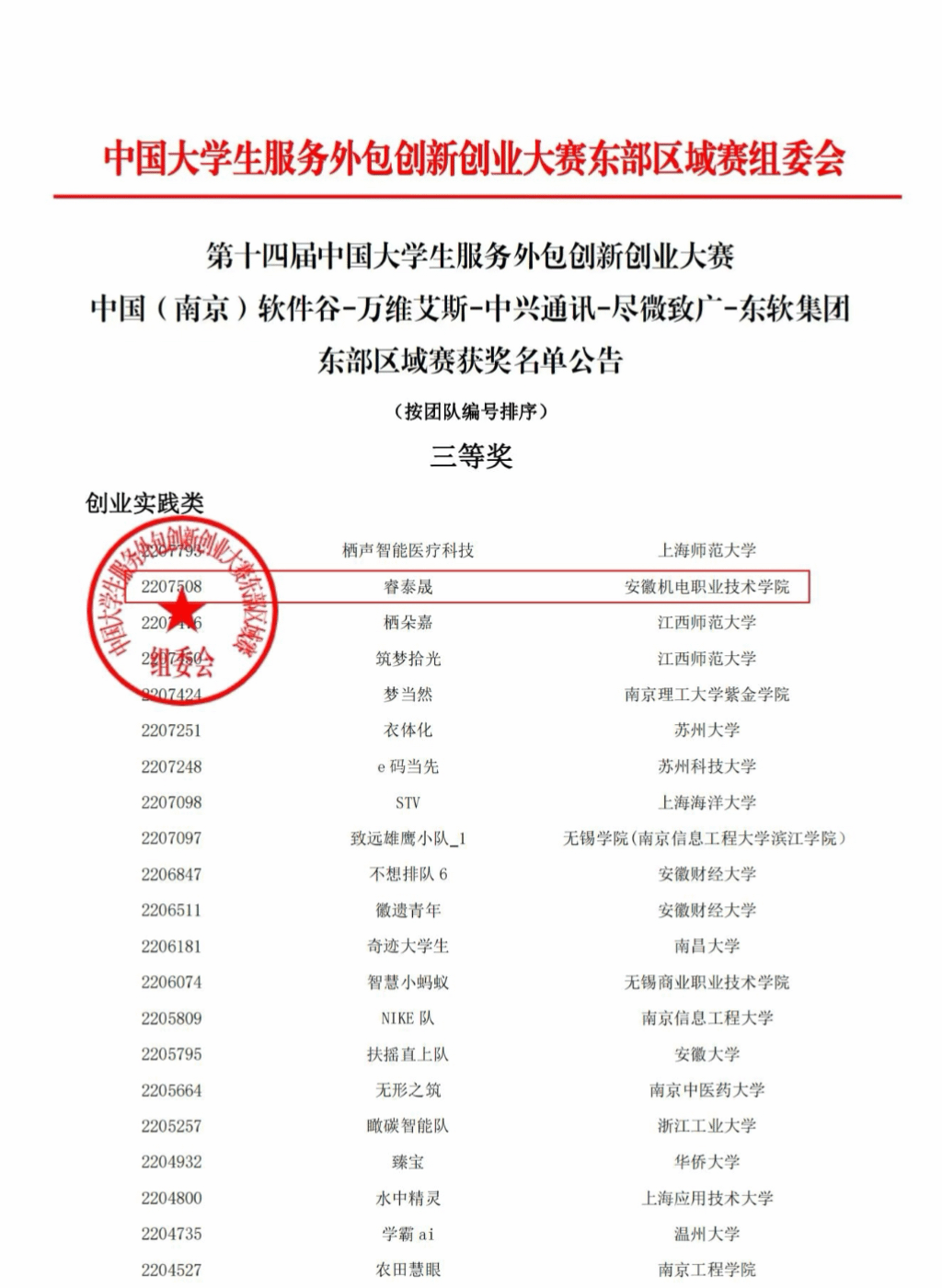 近日,第十四届中国大学生服务外包创新创业大赛东部区域赛和B类创响无锡赛道圆满落幕。我校三个团队荣获第十四届中国大学生服务外包创新创业大赛B类创响无锡赛道全国三等奖,一个团队在东部区域赛中荣获三等奖。