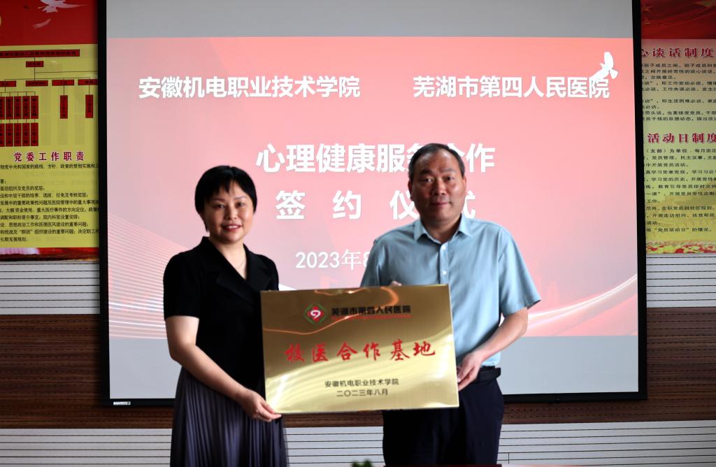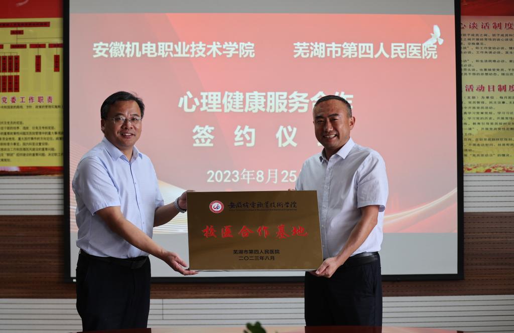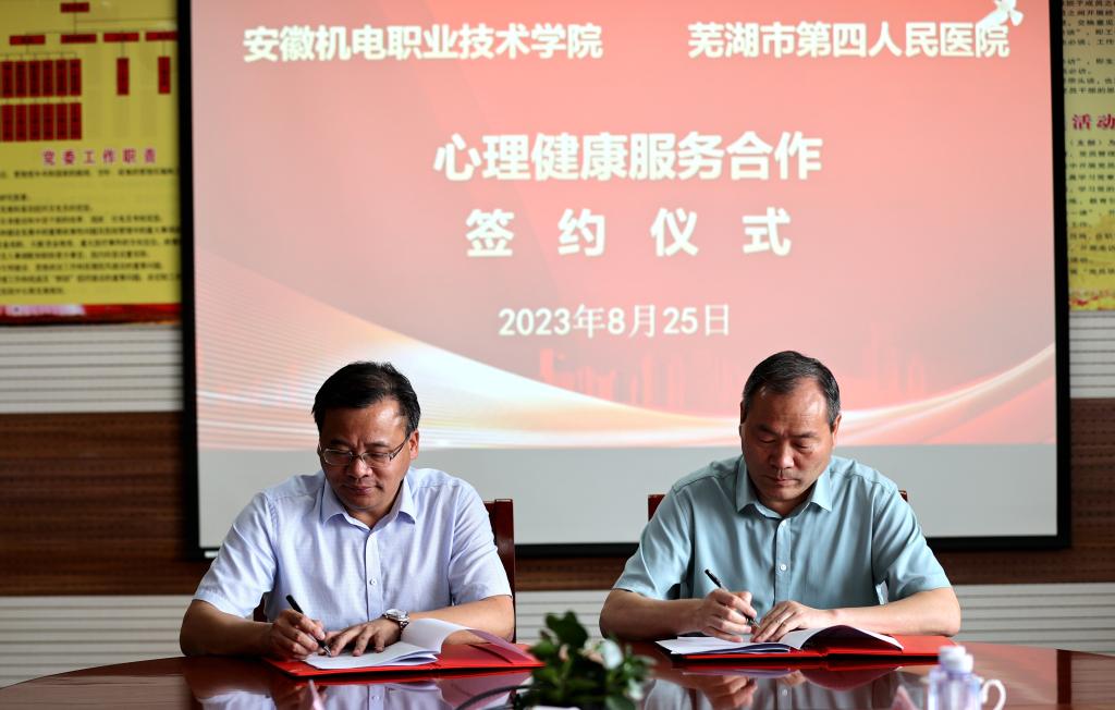 为提升大学生心理素质,完善心理危机转介诊疗机制,畅通从学校心理健康教育与咨询机构到精神卫生专业机构的心理危机转介绿色通道,本着“优势互补、资源共享、互惠双赢、共同发展”的原则,8月25日下午,学校与芜湖市第四人民医院在第四人民医院行政楼八楼会议室举行了校医合作签约仪式。芜湖市第四人民医院党委副书记、院长宋传福,党委委员、副院长张军,永利集团3044官网欢迎您副院长姜绳,后勤保障处处长邬孝春,学工部部长叶红辉、副部长单玲,心理健康教育中心主任王东华参加签约仪式。