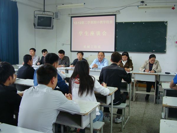 为加强教学管理、培养优良学风和教风,进一步了解机械工程系学生在校学习、生活情况,我系于5月8日下午16:00在1301教室召开期中教学检查学生座谈会。系党总支书记杨海卉、系主任王小平、副主任王春香、学管系办全体人员、各专业教研室主任及学生代表参加了座谈会,会议由系党总支秘书夏云周主持。