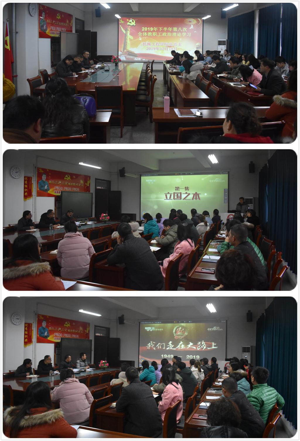 根据《永利集团3044官网欢迎您教职工政治理论学习制度(修订)》的通知(宣统〔2018〕4号)精神,结合机械工程学院全体教职工政治理论学习计划安排,12月18日下午,机械工程学院在6410会议室组织全体教职工观看教育纪录片《教育强国》和文献专题片《我们走在大路上》。