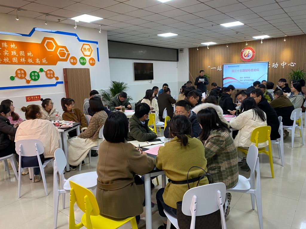 11月24日下午,由学工部主办、电气工程学院承办的第三十五期辅导员论坛在静雅苑二楼“一站式”学生社区活动中心成功举行。校学生处处长叶红辉、副处长单玲以及各二级学院党总支副书记、全体专职辅导员参与,论坛由电气工程学院党总支副书记王先主持。